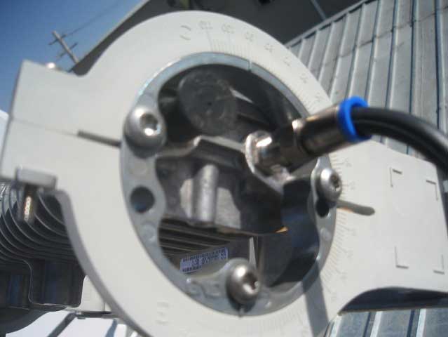 The beam elevation angle (tilt) is the slope of the large circular polarisation scale plate behind the dish. You may apply an inclinometer to the side of this scale plate. The image below shows the beam elevation angle set to 48 deg. The metal plate behind the dish is at right angles to the beam direction. You can make your own inclinometer like this by printing out page: How to make inclinometer I would have expected the final polarisation to be about 50 deg, based on 46.7 calculated plus a possible 3.5 deg Eutelsat satellite offset. This assumes the 505 directly away from the feed support arm and the LNB arm was sticking out sideways initially (for vertical name receive polarisation), when the feed support arm was at the bottom central position. Adjusted polarisations do vary from the calculation and this is why the hub usually asks you to make an adjustment while they look at your cross-pol signal on their spectrum analyser. I can't explain a large difference of 20 deg. My calculated magnetic compass azimuth angle is based on calculation plus an approximation of the earth's magnetic field. Errors are normally under 5 deg. Local compass measurments may also be in error due to iron in buildings and structures plus local magnetic anomalies depending on the geology. The dish pointing maps (eg: dish pointing afghanistan) now include a blue line showing the azimuth direction. This is helpful as the blue line may be related to the direction of the sides of your roof, building, road, runway (210 magnetic for Bagram) or whatever landmark may be visible in the aerial photo. I can't explain a large difference of 40 deg. Best regards, Eric. |
