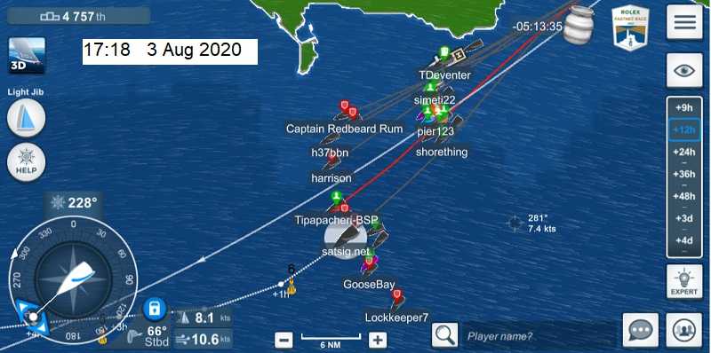 19:18 Just 10 minutes later and I've lost 1600 places ! Having the names on the chart screen helps. It may be obvious that changing to 66 deg wind angle made