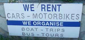 We rent Cars - Motobikes. We organise Boat trips and Bus tours